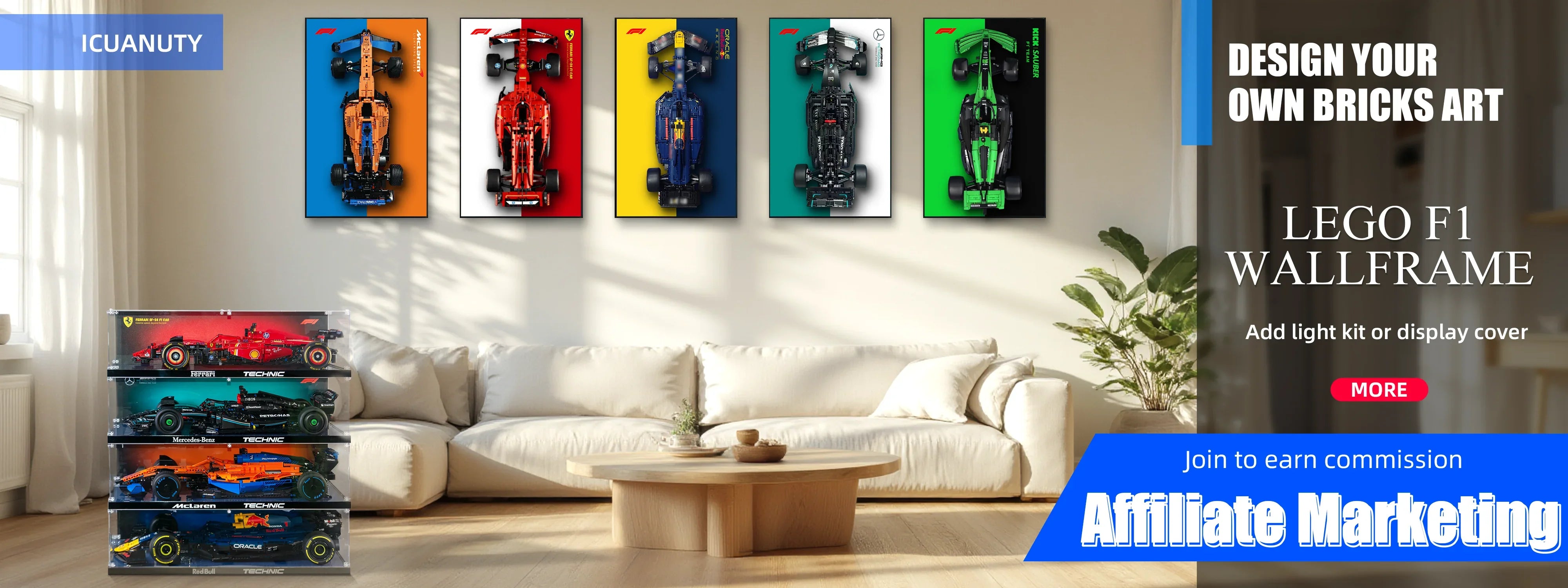 Built with premium mirror-finish acrylic, a sturdy aluminum alloy F1 display frame, and an ultra-HD printed background, our display turns your LEGO F1 car into the most eye-catching feature in your home.