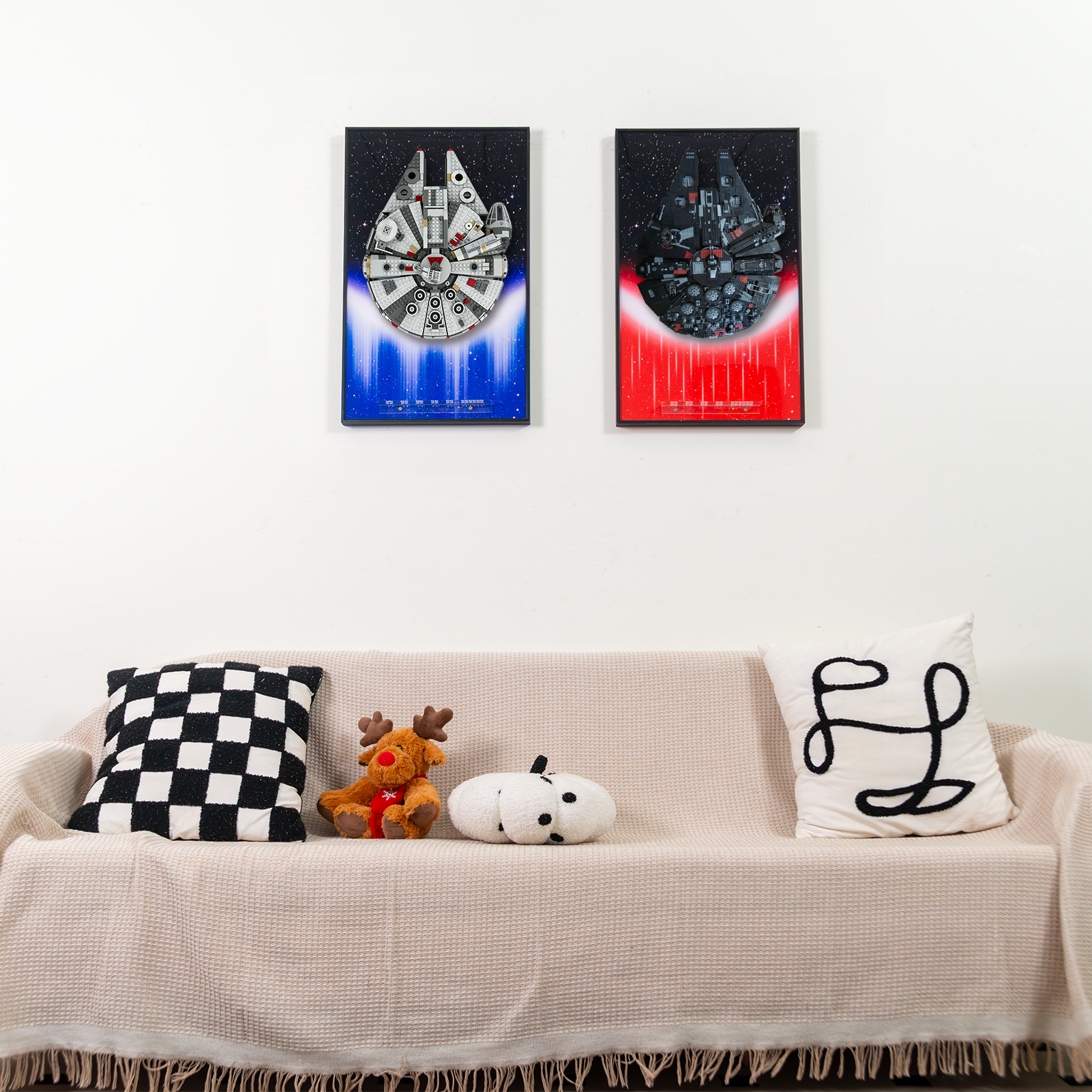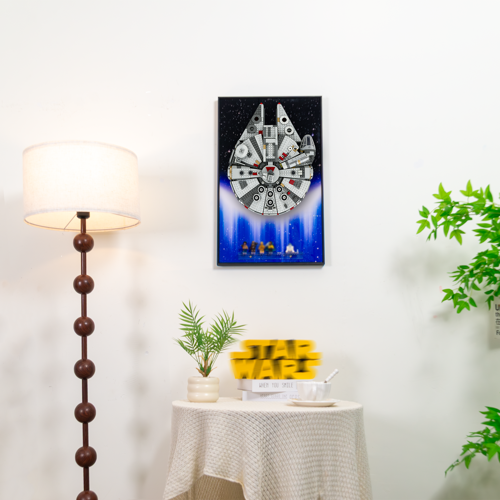 Inspired by the Millennium Falcon’s iconic role throughout the Star Wars saga, LEGO 75257 captures the ship’s legendary charm and adventurous spirit. This Display Frame’s blue galactic background enhances that atmosphere, transforming your model into a striking Star Wars décor piece that elevates any themed collection.
