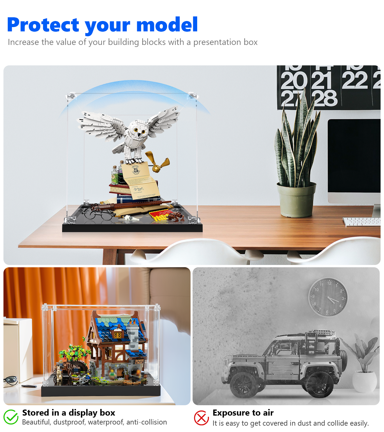 Forhøj din LEGO® Harry Potter™ Hogwarts™ Ikoner - Særlig Udgave 76391 med vores premium-vitrine. Fremstillet af 98% ultraklart 3mm akryl, tilbyder denne vitrine museumsgrad transparency og støvfri beskyttelse til dit samleobjekt-sæt.