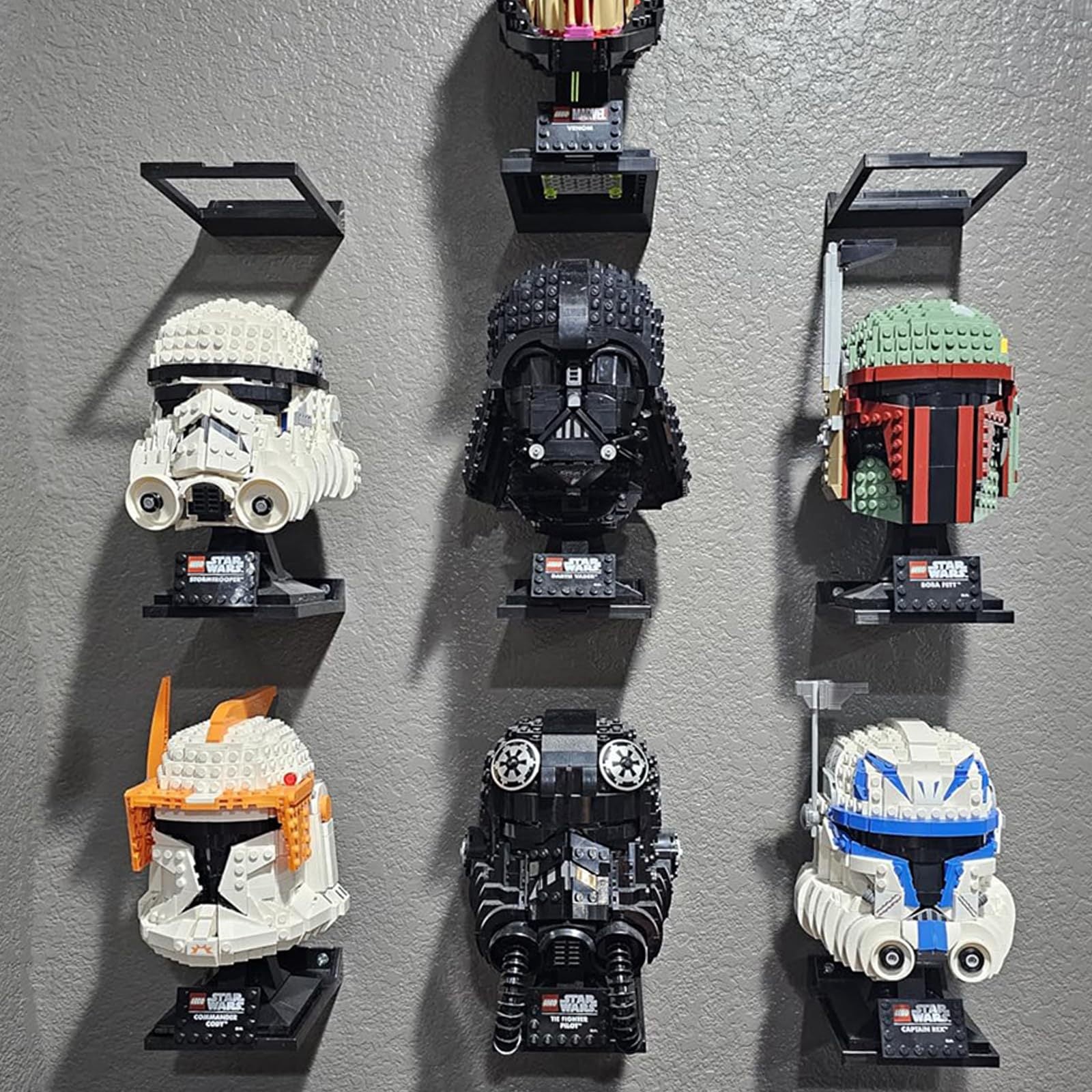 Reol til LEGO-kompatible med alle standard LEGO-hjelme, Boba Fett 75277/Tie-jagerpilot 75274/Stormtrooper 75276
