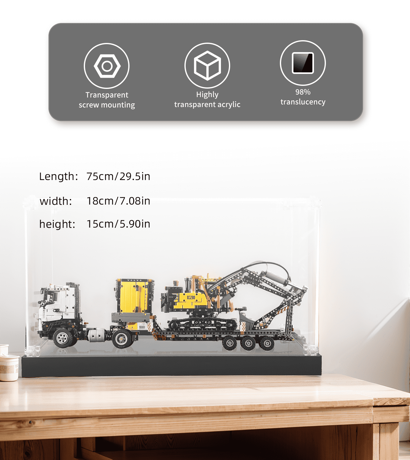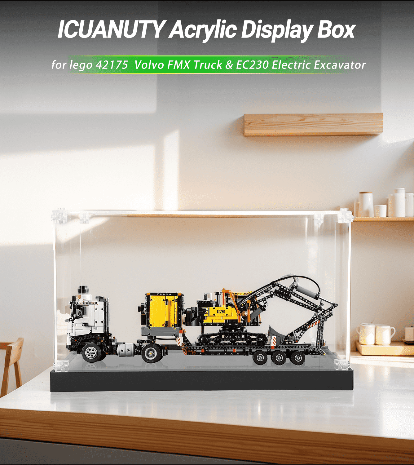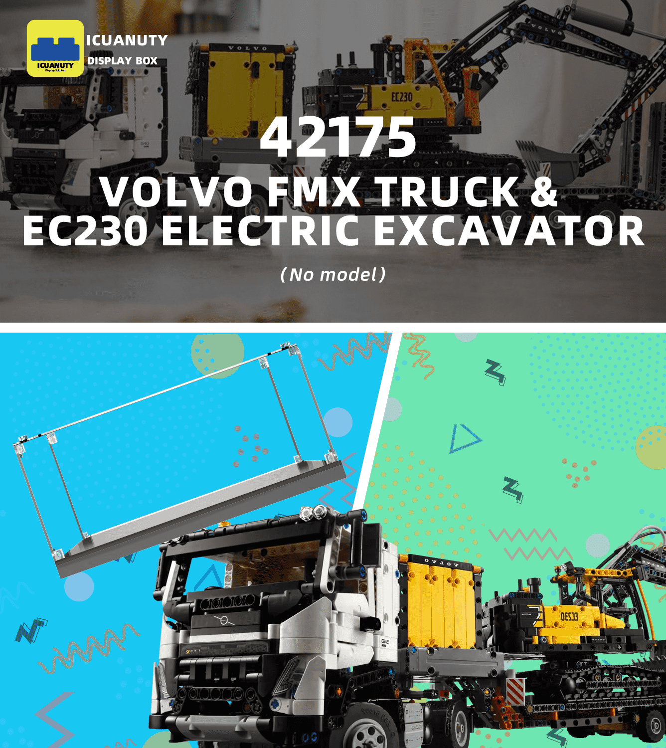 Display case for LEGO Volvo FMX Truck & EC230 Electric Excavator 42175