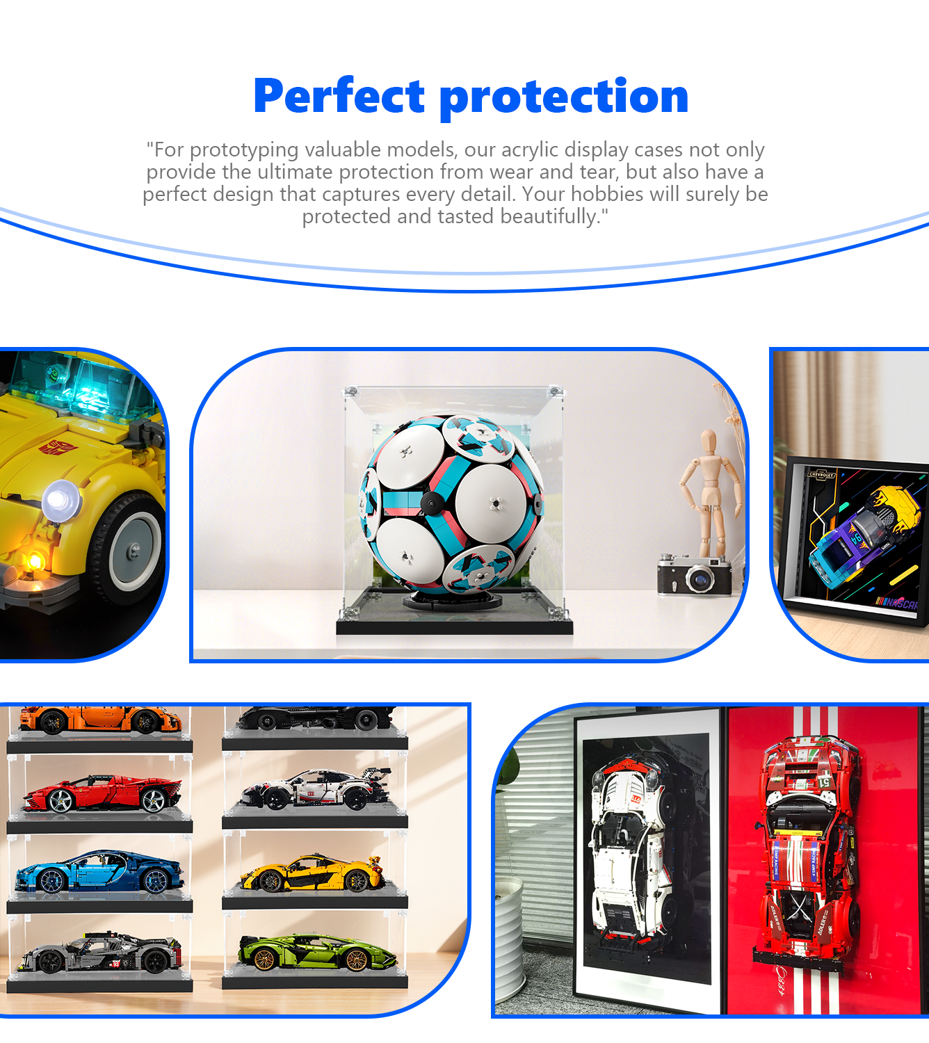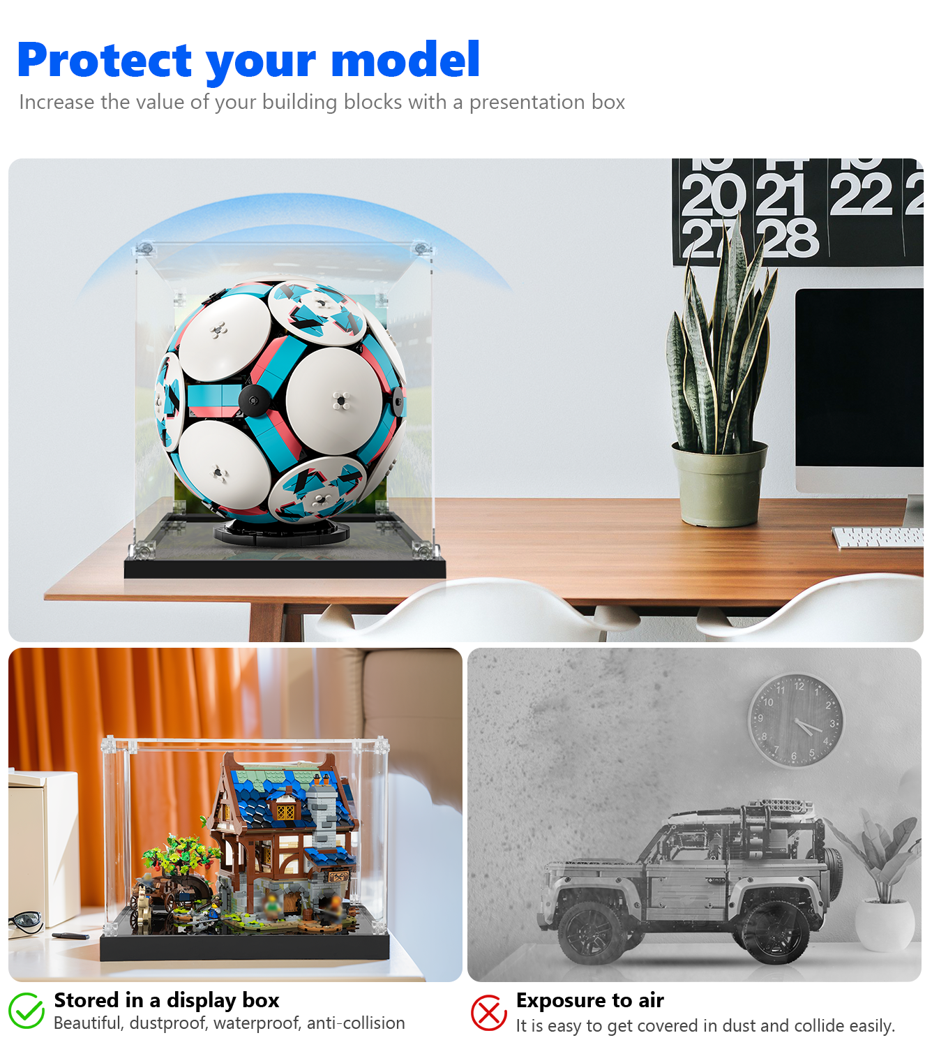 Caractéristiques techniques Compatibilité : Spécifiquement conçu pour LEGO® Éditions Ballon de football 43019Matériau : Acrylique optique de qualité supérieure de 3 mm. Transparence : 98 % lumière claire ultratransparente.
