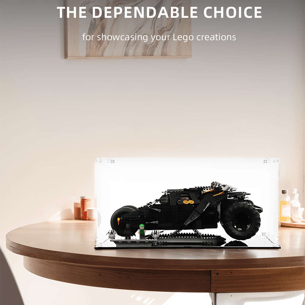 Protégez, élévez et exposez votre construction LEGO® DC Batman™ Batmobile™ Tumbler avec notre vitrine sur mesure.