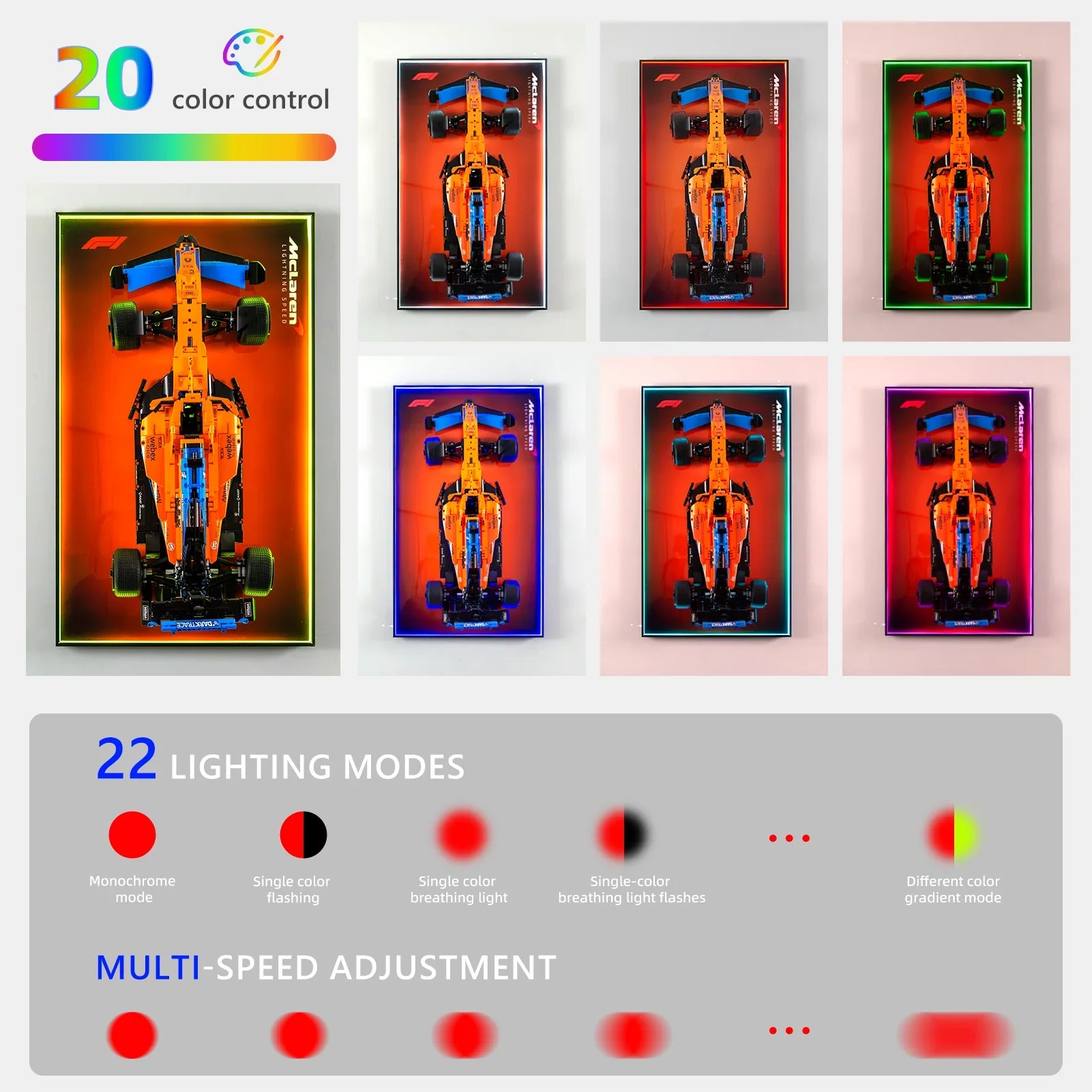 Per lo McLaren F1 sfondo, abbiamo creato una tavolozza di gradienti di ambra e nero, preservando il dinamismo tagliente dell’auto mentre stratificavamo un senso di mistero distintivo della McLaren. Quando il SpectraFlow 42141 design è stato finalizzato, il team era entusiasta - ogni transizione di gradiente è stata calibrata meticolosamente per mimare la fluidità della luce naturale, infondendo vita vivida al modello.
