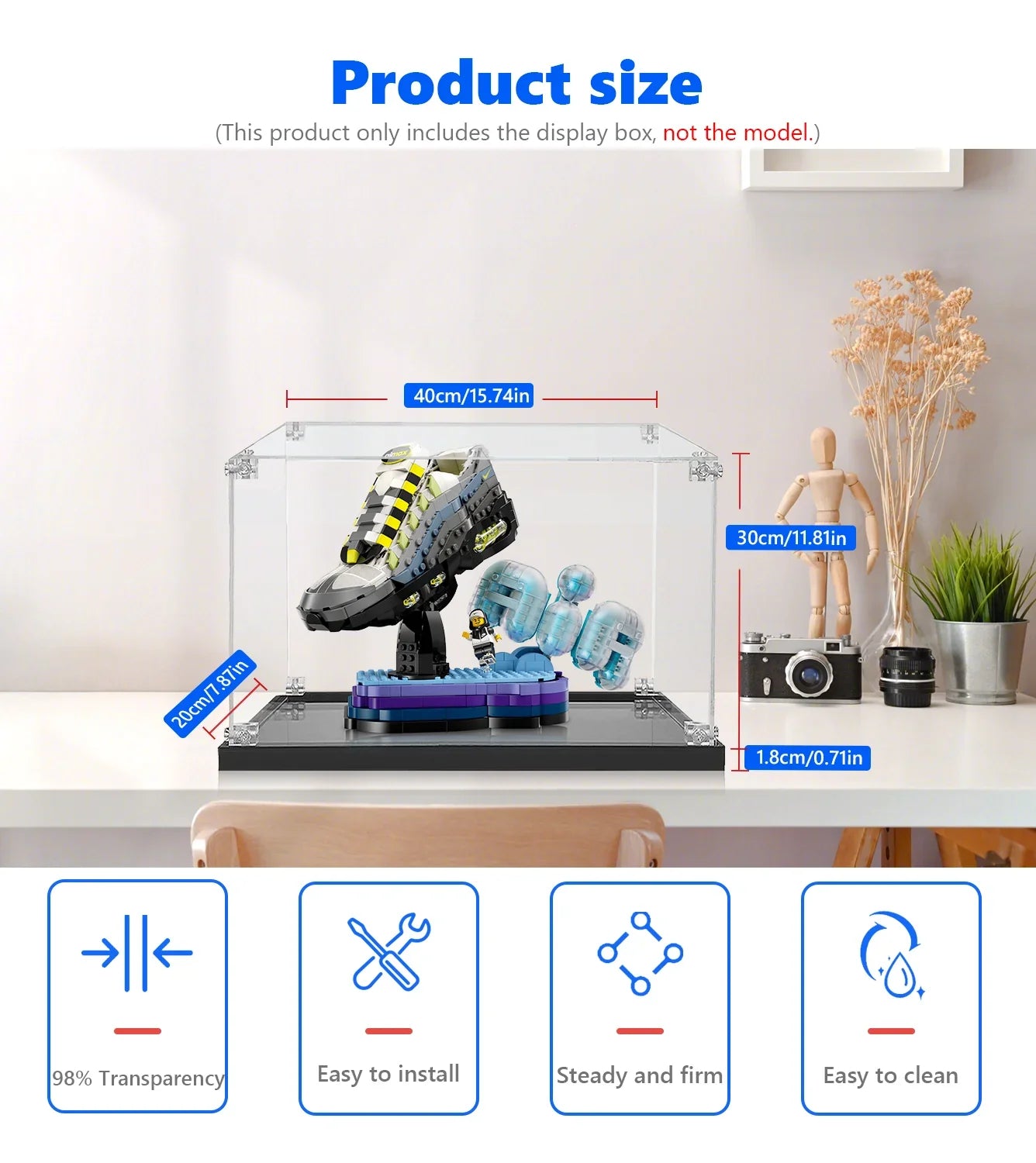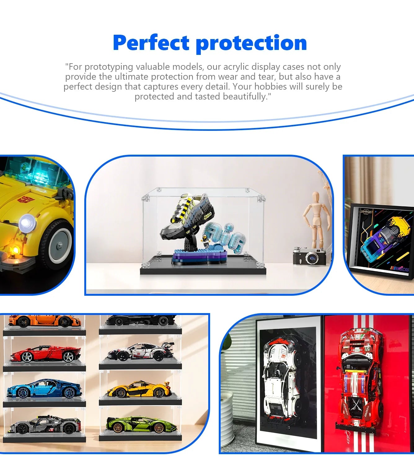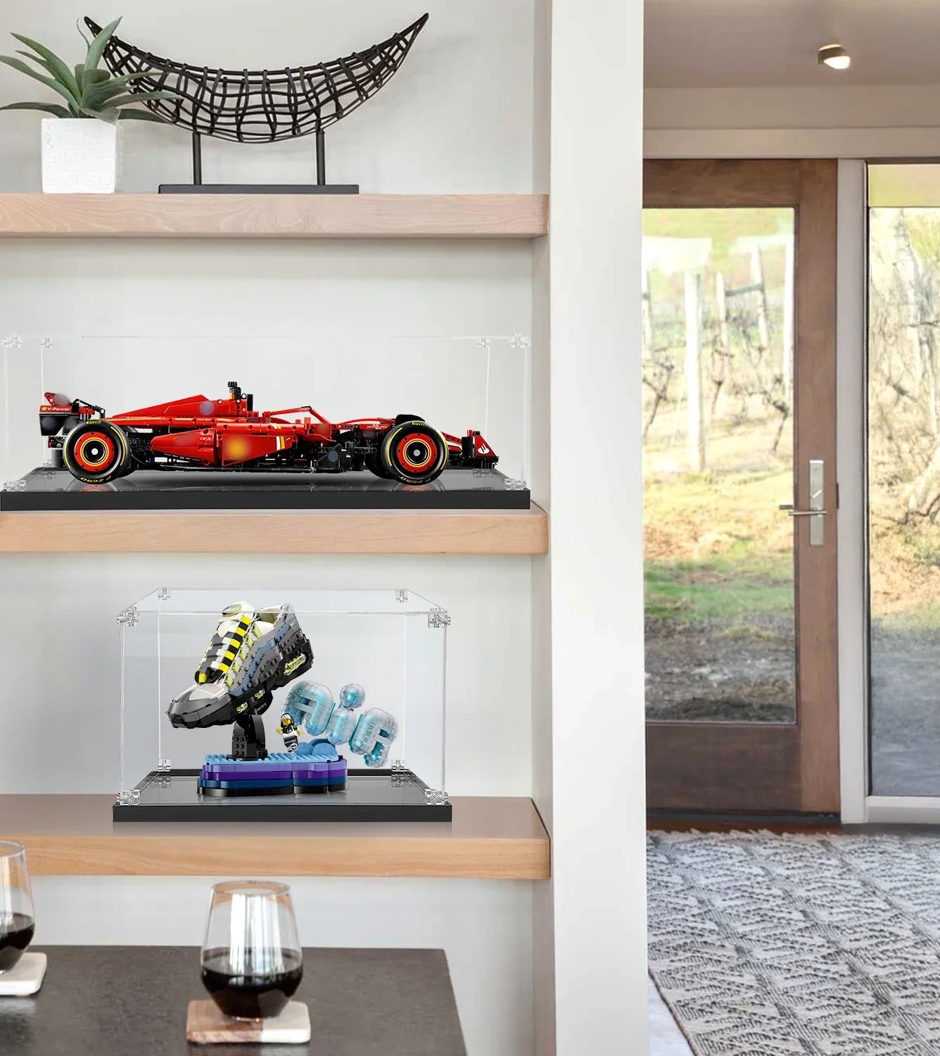 Het behouden van de "deadstock" uitstraling van je LEGO-modellen is een uitdaging. De meeste display cases voor lego zijn ofwel te klein of gebruiken goedkope materialen die verkleuren. Onze aangepaste #43025 kast is speciaal ontworpen voor de afmetingen van deze set, waardoor een stevige pasvorm ontstaat die de iconische golvende zijpanelen en neontinten van de schoen benadrukt. Als je op zoek bent naar de beste modelauto displaycase kwaliteit voor je niet-voertuig sets, dit is het.