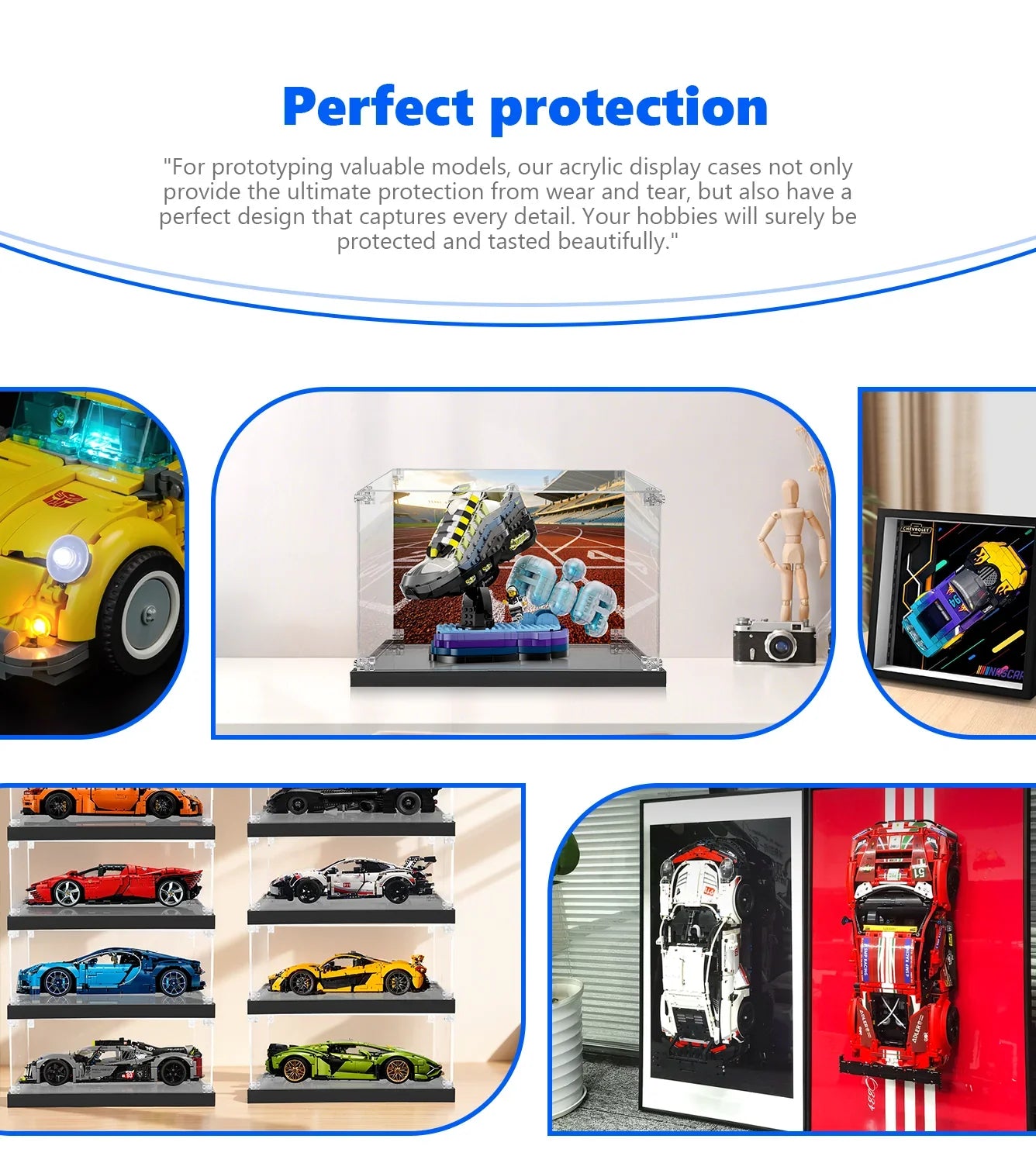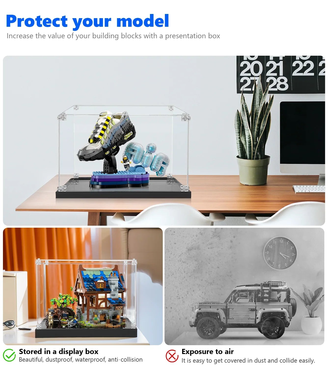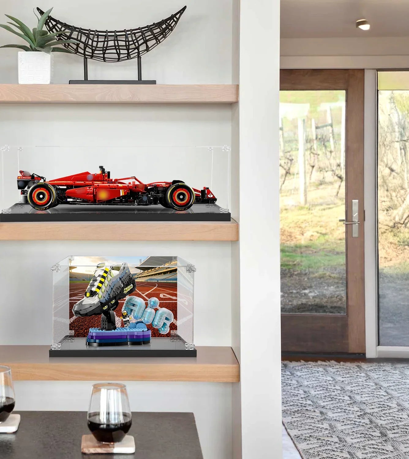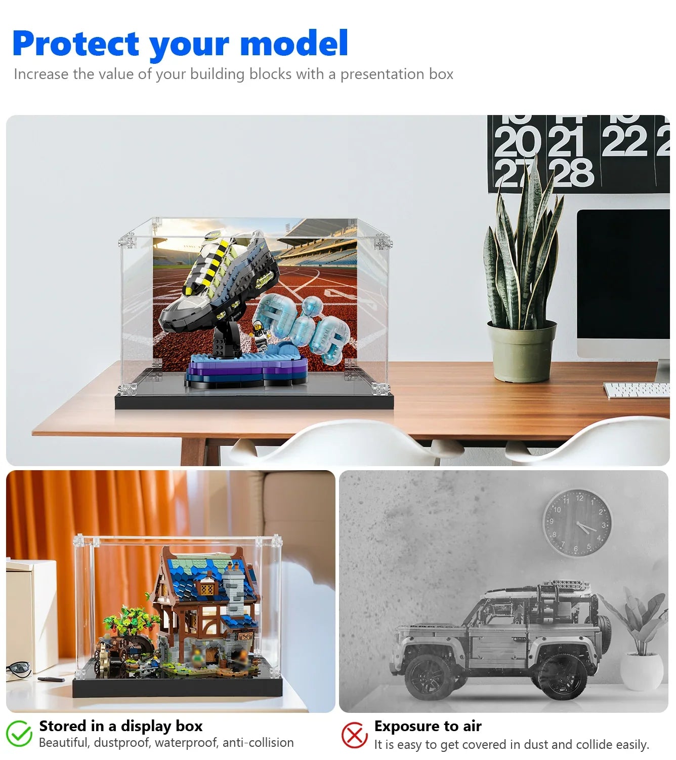 Het behouden van de "deadstock" uitstraling van je LEGO-modellen is een uitdaging. De meeste display cases voor lego zijn ofwel te klein of gebruiken goedkope materialen die verkleuren. Onze aangepaste #43025 kast is speciaal ontworpen voor de afmetingen van deze set, waardoor een stevige pasvorm ontstaat die de iconische golvende zijpanelen en neontinten van de schoen benadrukt. Als je op zoek bent naar de beste modelauto displaycase kwaliteit voor je niet-voertuig sets, dit is het.