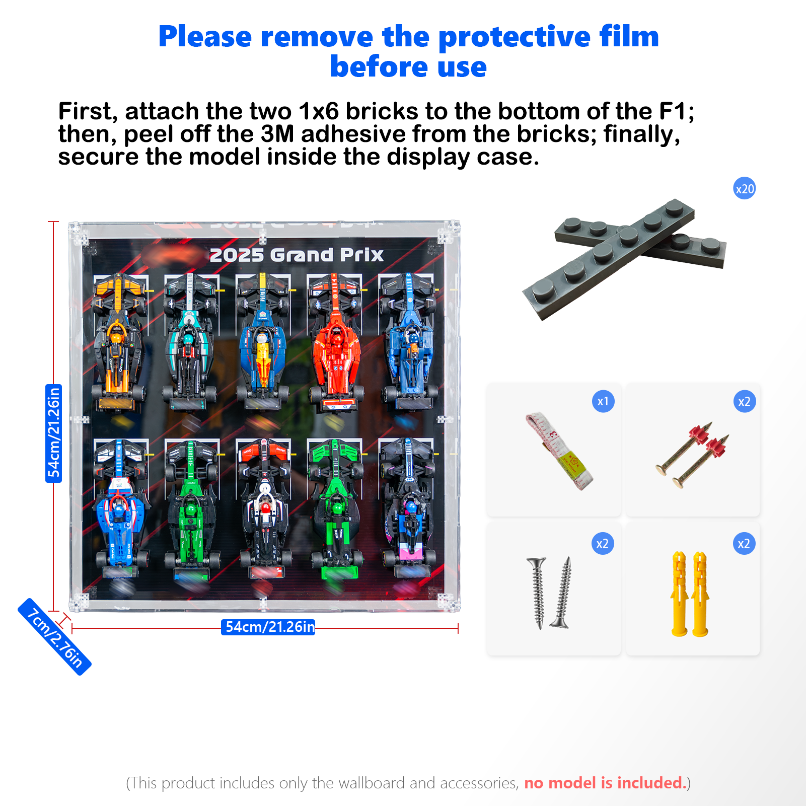 Turn your wall into a high-octane garage with our 10-in-1 Wall-Mounted Lego Display Case. Measuring an impressive 54 x 54 x 7 cm, this premium lego display box is specifically engineered to hold up to 10 of your favorite 1:32 scale vehicle models, making it the absolute perfect fit for your lego speed champions or custom lego f1 car builds.