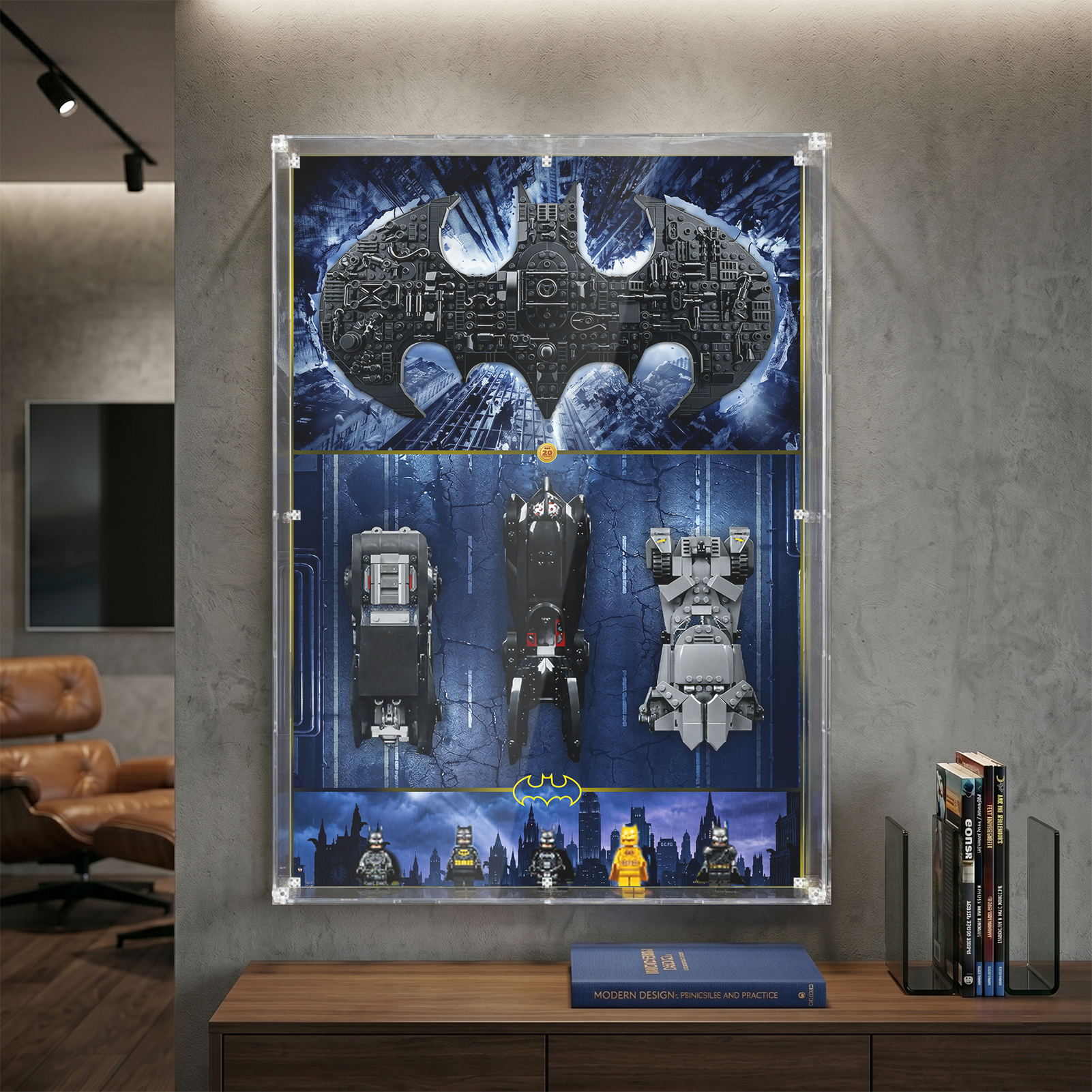 Transform your wall into a legendary gotham city skyline with our custom-engineered lego wall display. This vertical showcase is designed specifically for the LEGO Batman series, providing a professional-grade home for the Batman™ Logo (76330) and the iconic Batmobiles from Batman v Superman™ (76331), The Batman™ (76332), and Batman & Robin™ (76333).