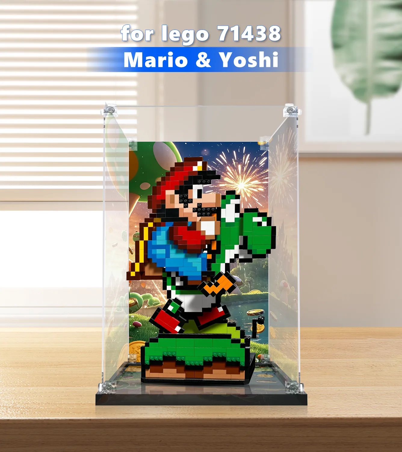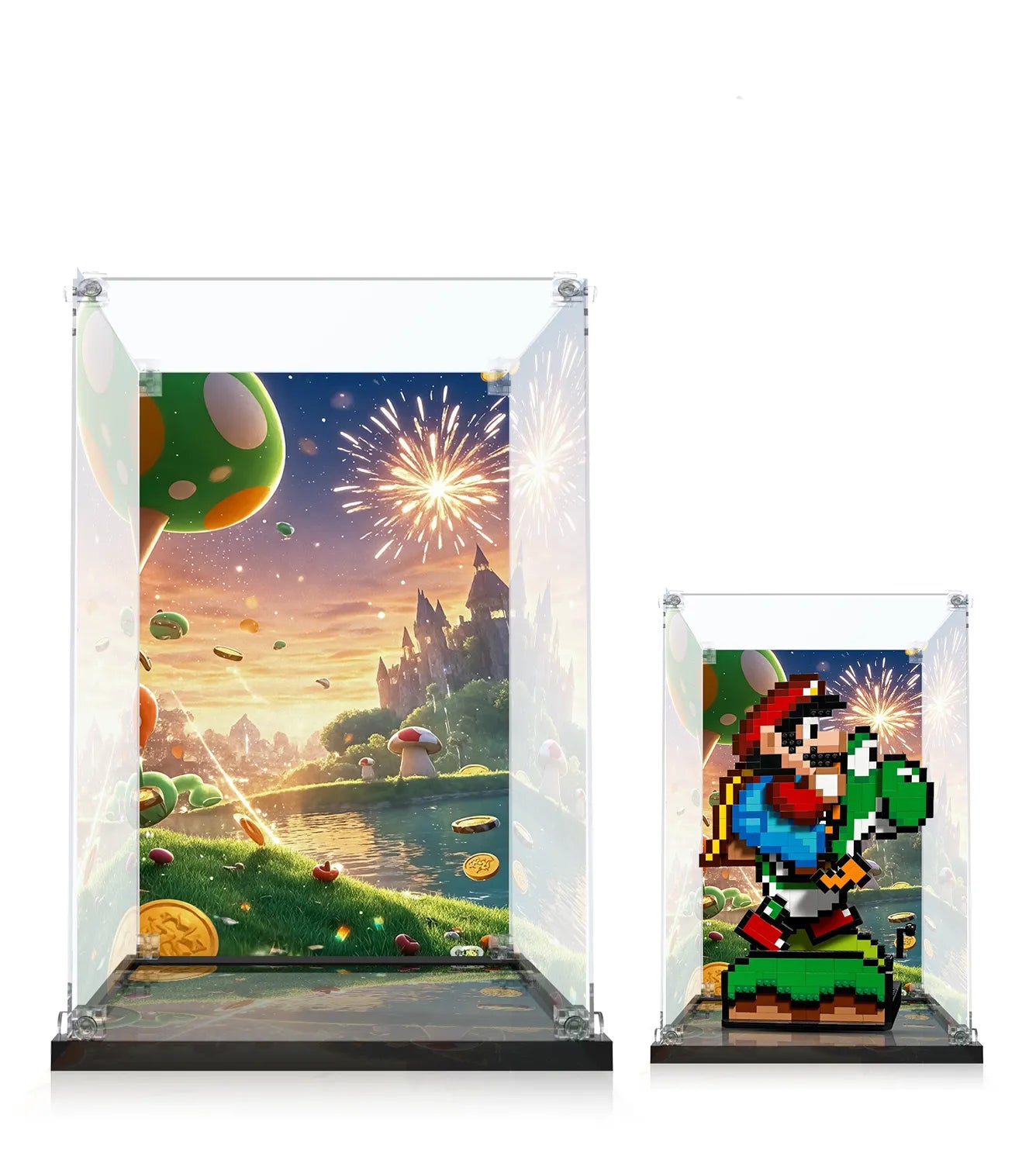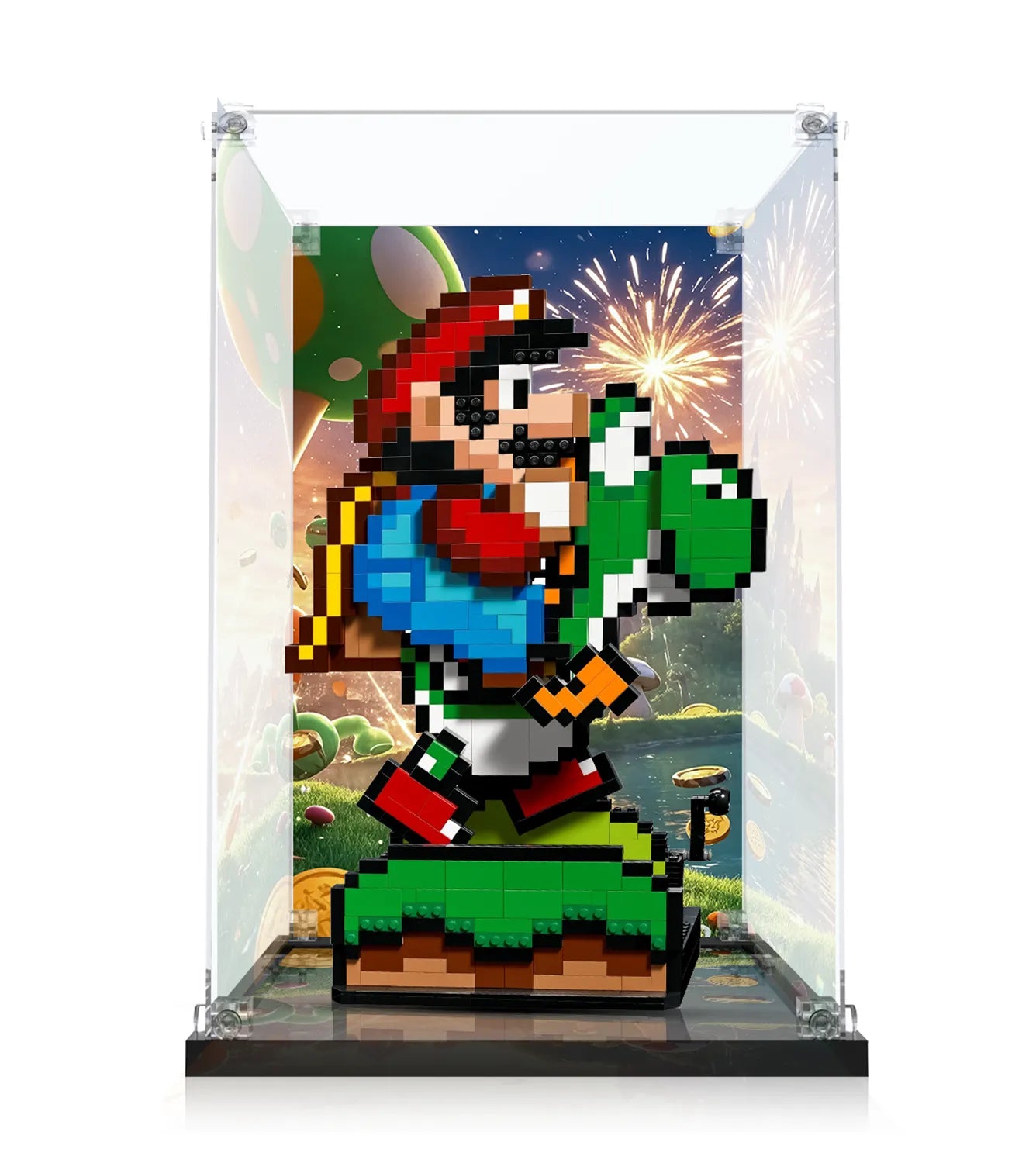 Bring the fun of the Mushroom Kingdom to life with this premium display case, designed exclusively for the LEGO® Super Mario World™: Mario & Yoshi set. Crafted by ICUANUTY, this case combines playful aesthetics with superior protection, ensuring your LEGO® Mario and Yoshi remain dust-free and ready to impress.