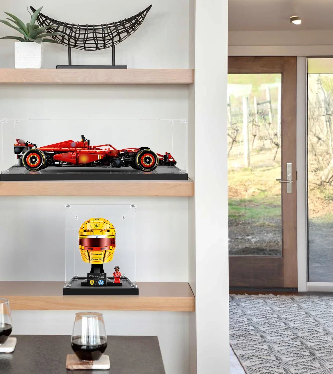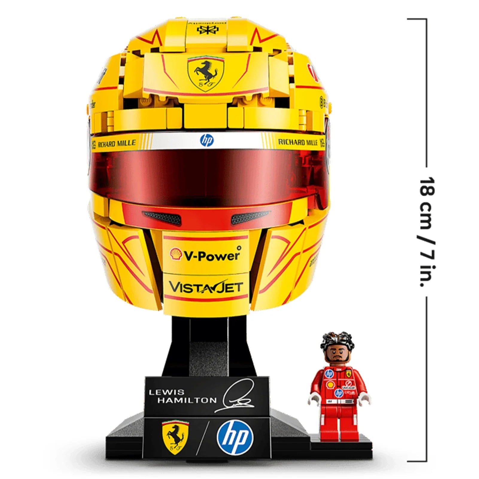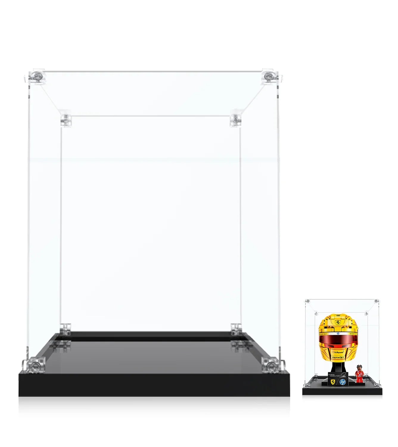 F1 fans know that the details matter. From the H.P. branding to the signature Hamilton yellow accents, our lego display case ensures no detail is lost to glare or dust. While many display cases for lego are generic, this unit is sized specifically to create a professional "gallery" look for helmet sets. It’s the perfect companion for collectors who also own the ferrari sf 24 or other race car legos.