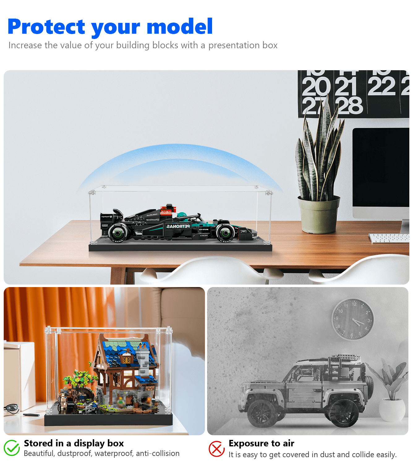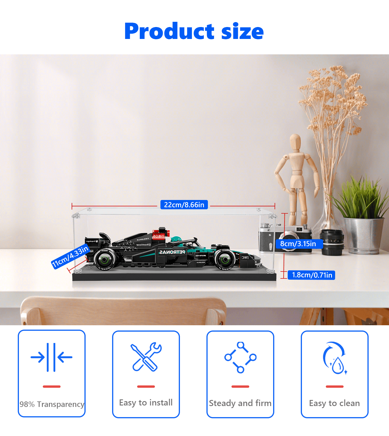 - Perfect for Collectors and Fans: Ideal for LEGO® enthusiasts and AMG F1 fans, this display case adds a touch of class and protects your valuable model.