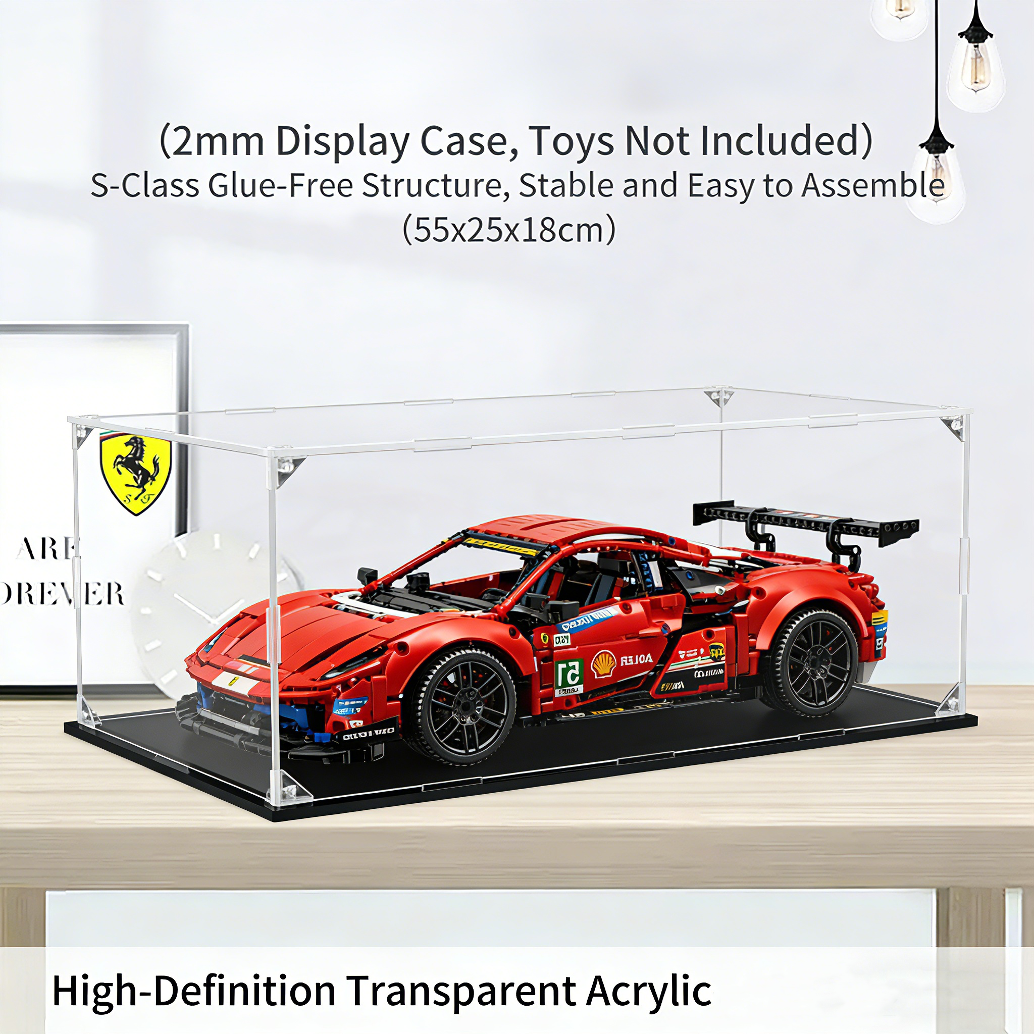 3mm S-Grade Acrylic: Ultra-transparent material ensures unobstructed views of every sculpted part (bodywork, wheels, livery) of the Ferrari 488 GTE.
